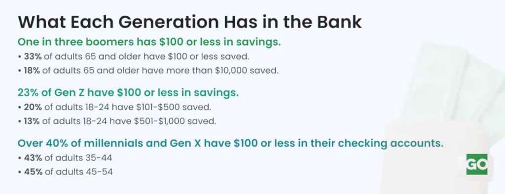 - Half of Americans have less than $500 in savings, with 36% having $100 or less in savings.