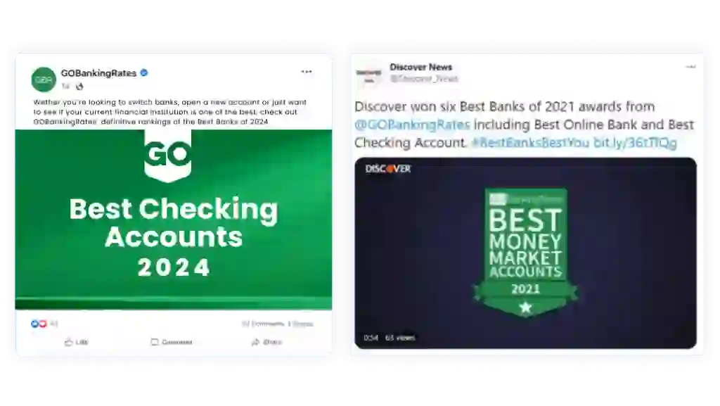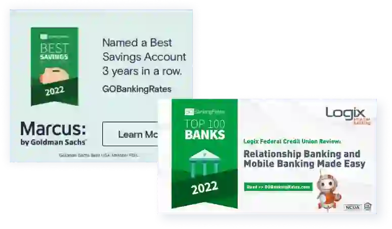 Showcase the ‘Best Banks’ badges provided by GOBankingRates across your website and linking to the official article(s) that lists your ranking(s) (homepage, product pages, awards/recognition pages, press page, etc.).