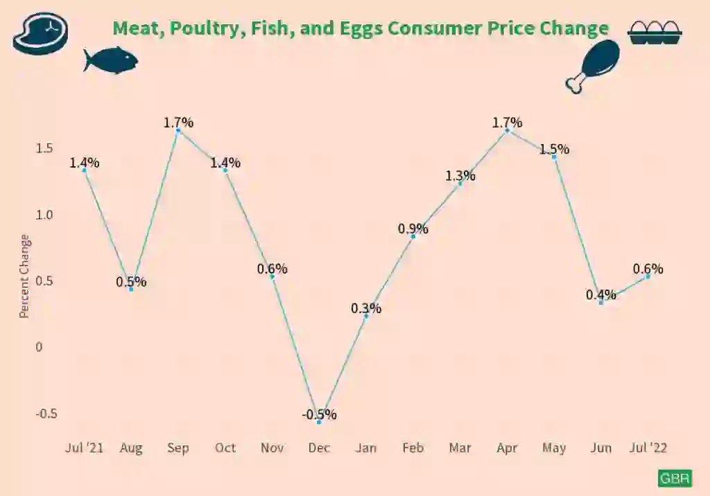 The cost of energy, used cars, apparel and communication all saw nominal increases (some even noting decreases, as in the case of fuel). Yet, food overall rose 1.1% from June. And in the case of food at home, aka groceries, that rose 1.3%. With the latest findings, this marks the seventh consecutive month where the CPI on food increased by at least 0.9%.