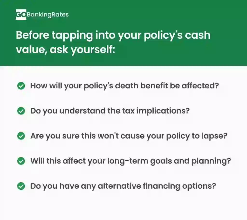 • It’s critical not to overborrow — taking out too much could create a cash value deficit that causes the policy to lapse.