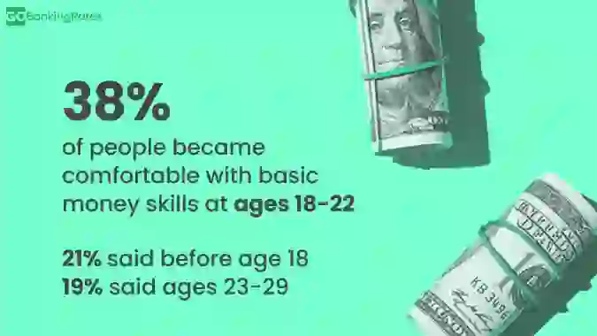 - 38% of Americans became comfortable with basic money skills between the ages of 18 and 22. 7% said they are still uncomfortable about their basic money skills.