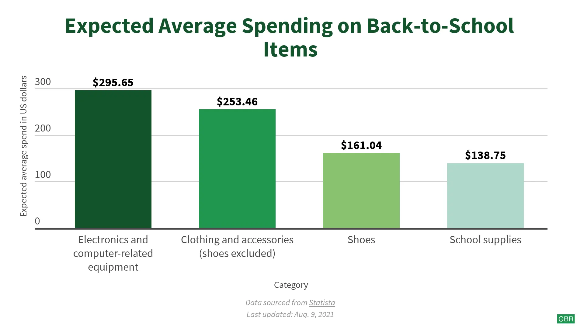 According to Statista, the average parent in 2021 spends the most on these four back-to-school needs: