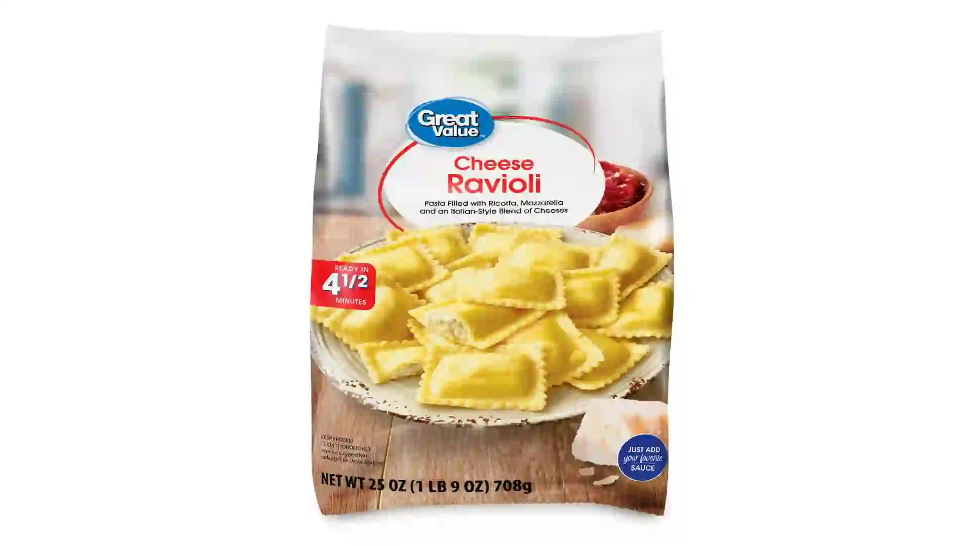 Aldi’s Italian-inspired Priano line has its fans, but Walmart’s cheese ravioli is still the better deal. Pair it with jarred sauce and a sprinkle of parmesan, and dinner’s ready in 10 minutes flat.