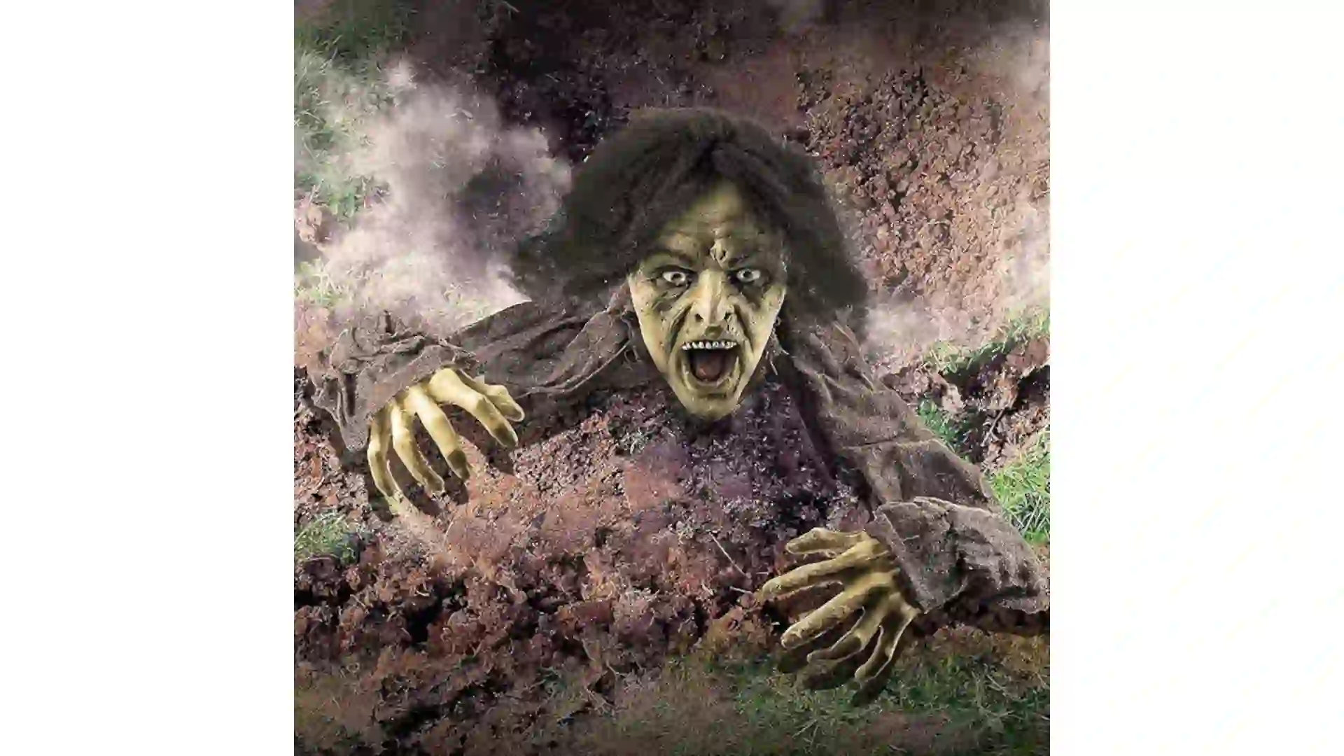 Install a crawling zombie prop in your yard to scare trick-or-treaters or passersby. It features a life-size zombie head and clothed arms that are designed to pose so that it appears to be clawing its way out of the ground. Add a fake gravestone nearby, and you’ll have a setup that looks straight out of a horror flick this Halloween.