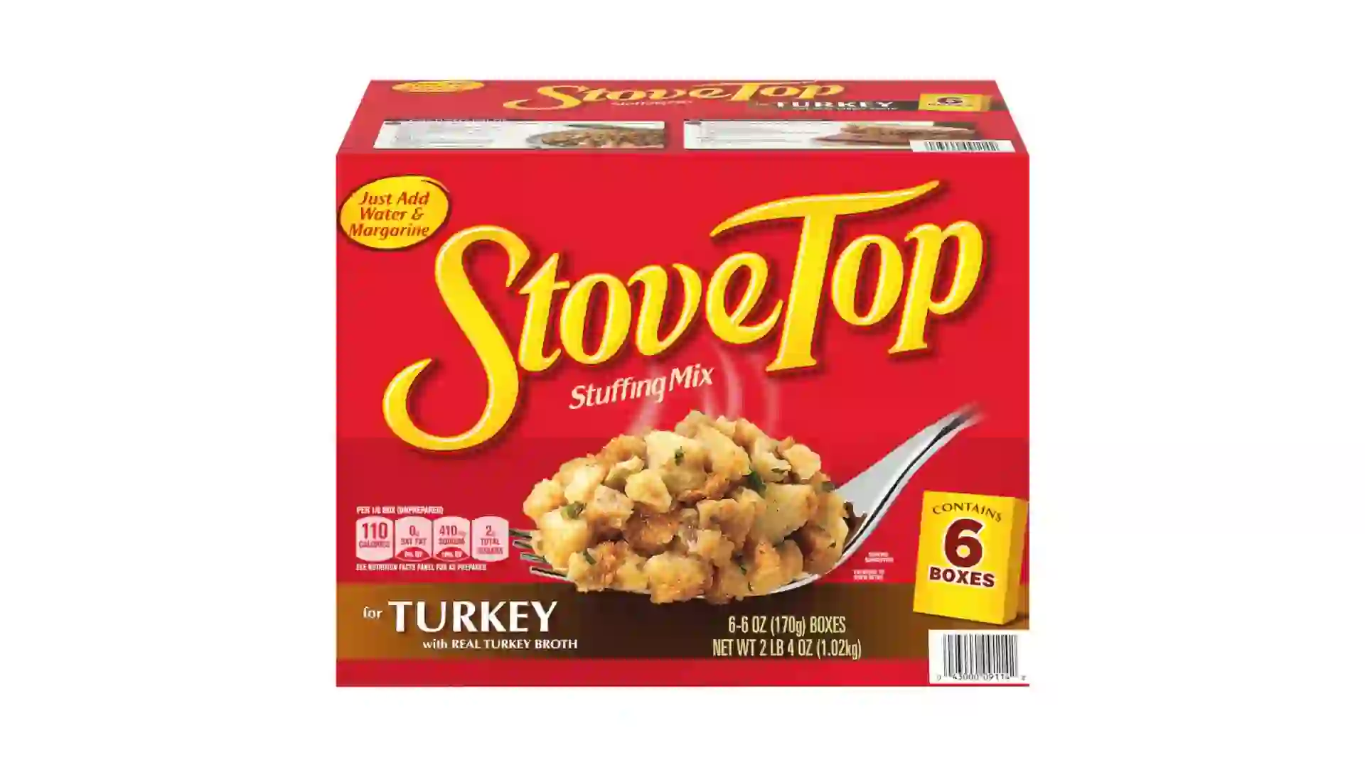 Stuff your turkey for less with a six-pack of StoveTop stuffing mix for $9.59. All you have to do is add water and margarine to bring this stuffing to life since it’s made with real turkey broth. There are 36 servings per container, which means you won’t run out of turkey stuffing anytime soon.