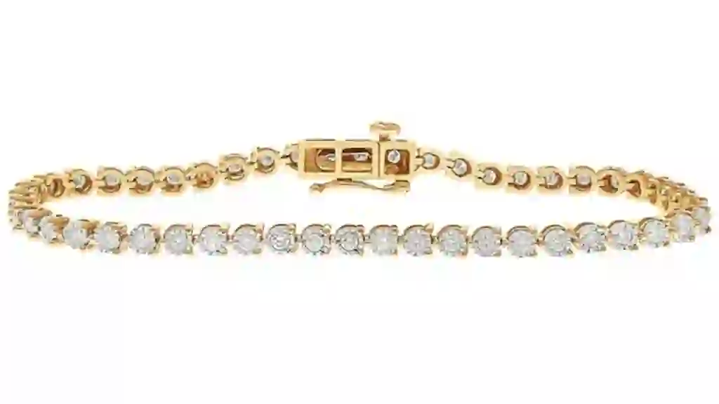 This diamond tennis bracelet is available in yellow and white gold. It’s a classic gift that will never go out of style.