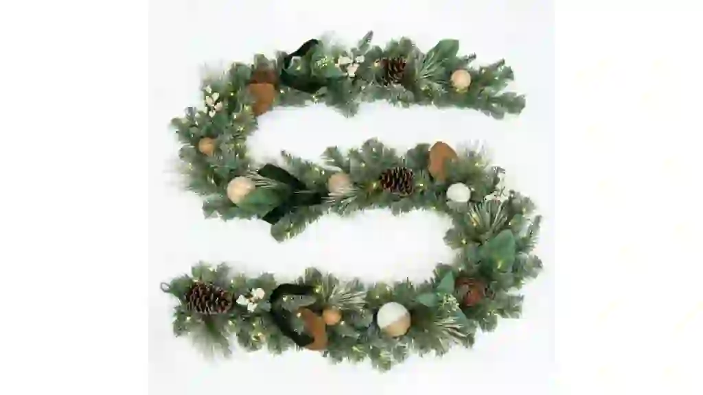 6. Member’s Mark 9′ Evergreen Pre-Lit Decorated Garland