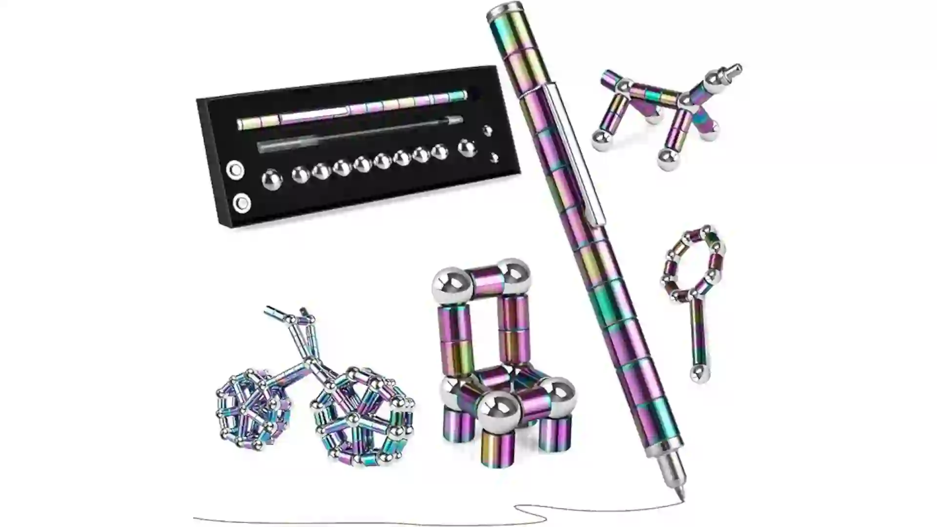 This fidget pen toy is a writing instrument and a stress reliever. With its ability to take any shape you can imagine, teens will have hours of fun with this fidget pen toy. It includes two small steel balls, 10 large steel balls, 13 fidget rings, two touch screen pen tips, two pen refills and a gift box.