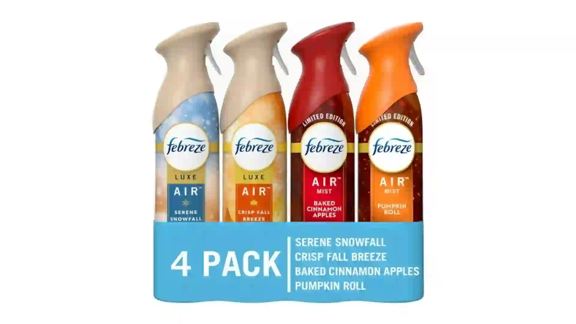 Get ready for fall and winter with the Febreze Air Effects fall and holiday air freshener spray. The package comes with four scents, serene snowfall, crisp fall breeze, baked cinnamon apples and pumpkin roll, which help set the mood for each season and make sure your home smells great for guests.