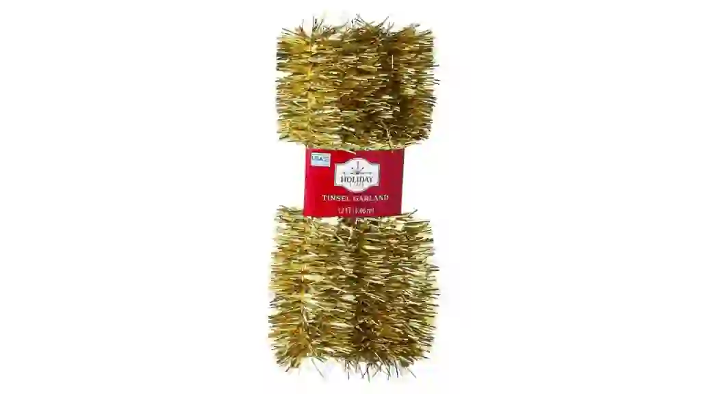 Dazzle for less with champagne gold tinsel garland. From decorating the tree to crafting in a wreath or centerpiece, Walmart shoppers get their money’s worth on the Holiday Time brand. Each strand measures up to nine feet in length.