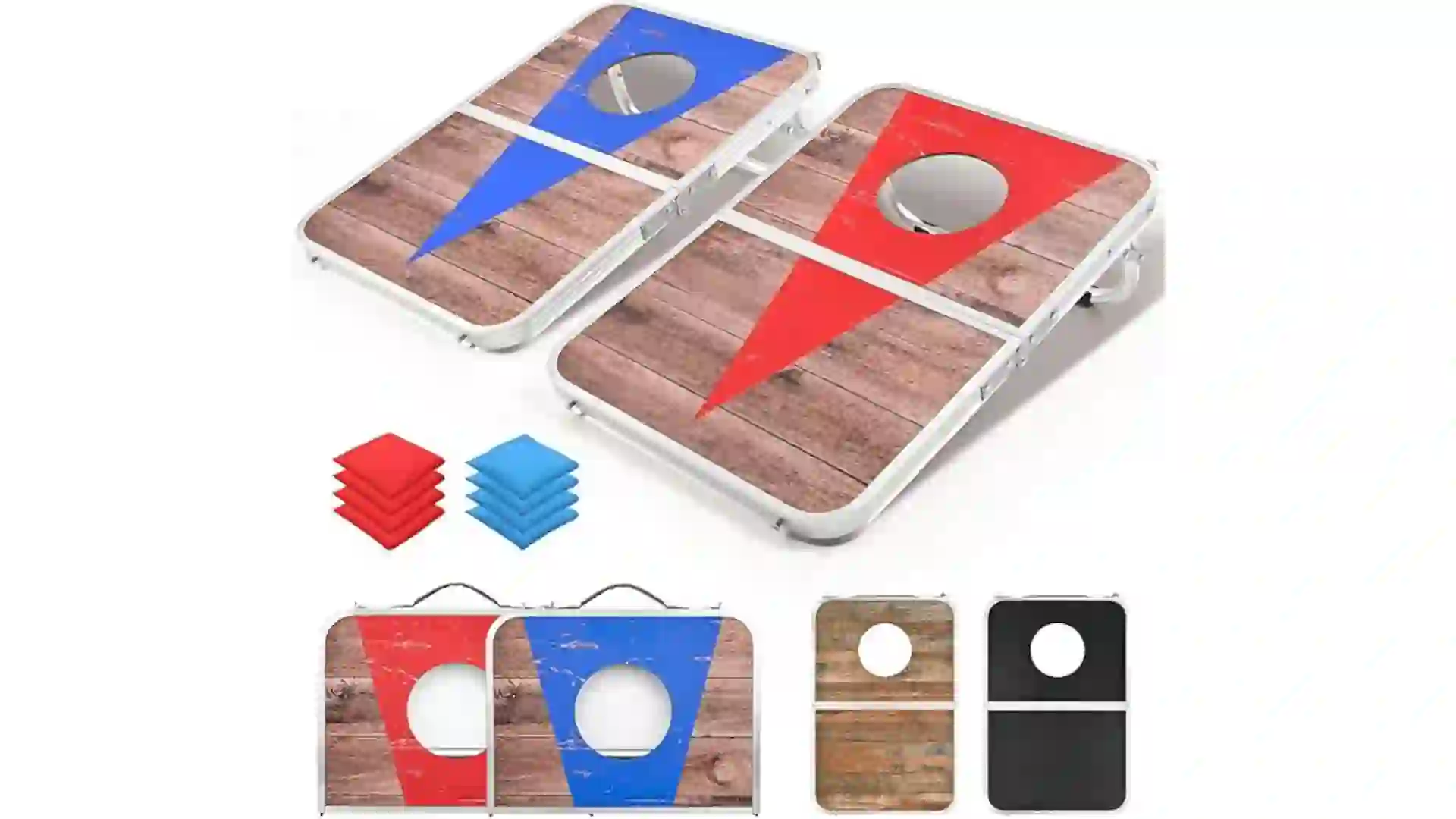 This portable corn hole set makes for easy entertainment during tailgates. The set comes with two aluminum alloy boards and eight bean bags. Additionally, each board folds in half and includes a handle for easy portability. The set is on sale on Amazon now.