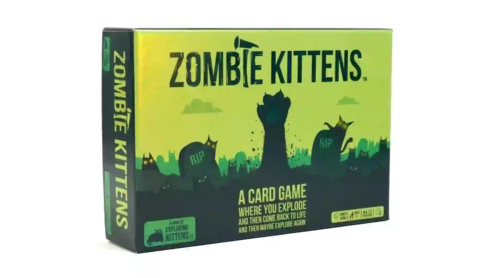Intended for ages 7 and up, the Zombie Kittens card game can be a fun addition to game night. Perfect for families, players dodge exploding kittens and use zombie kitten cards to rise from the dead.