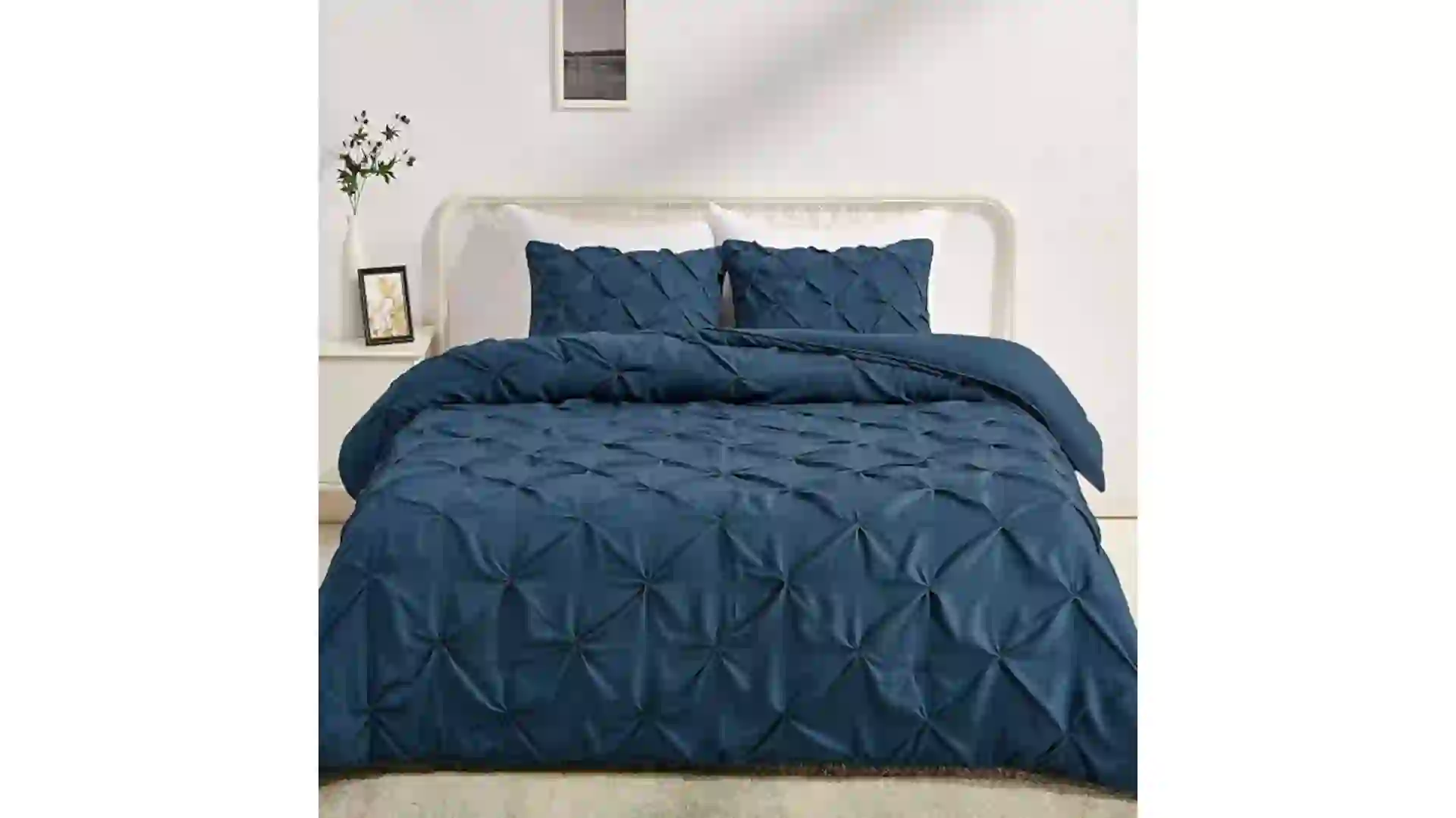 The Amazon Basics comforter set is made of 100% polyester down-alternative fiber with a lightweight microfiber shell, offering plenty of warmth on chilly nights.