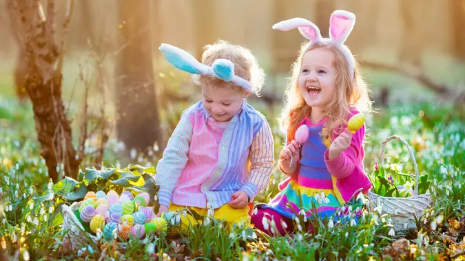 These bunny-shaped baskets are perfect for taking on an egg hunt or toting around candy and other goodies from the Easter Bunny. Choose between pink and blue shades.