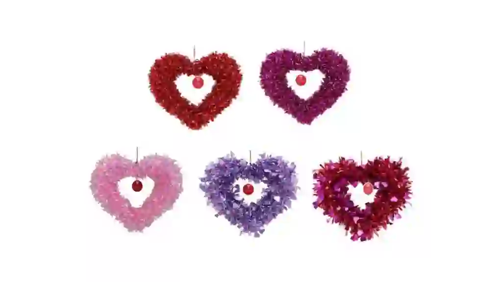 Add a sweet touch to any room with a tinsel heart. These hearts come in five assorted colors, including pink, red and purple, and can be displayed long after Valentine’s Day is over.