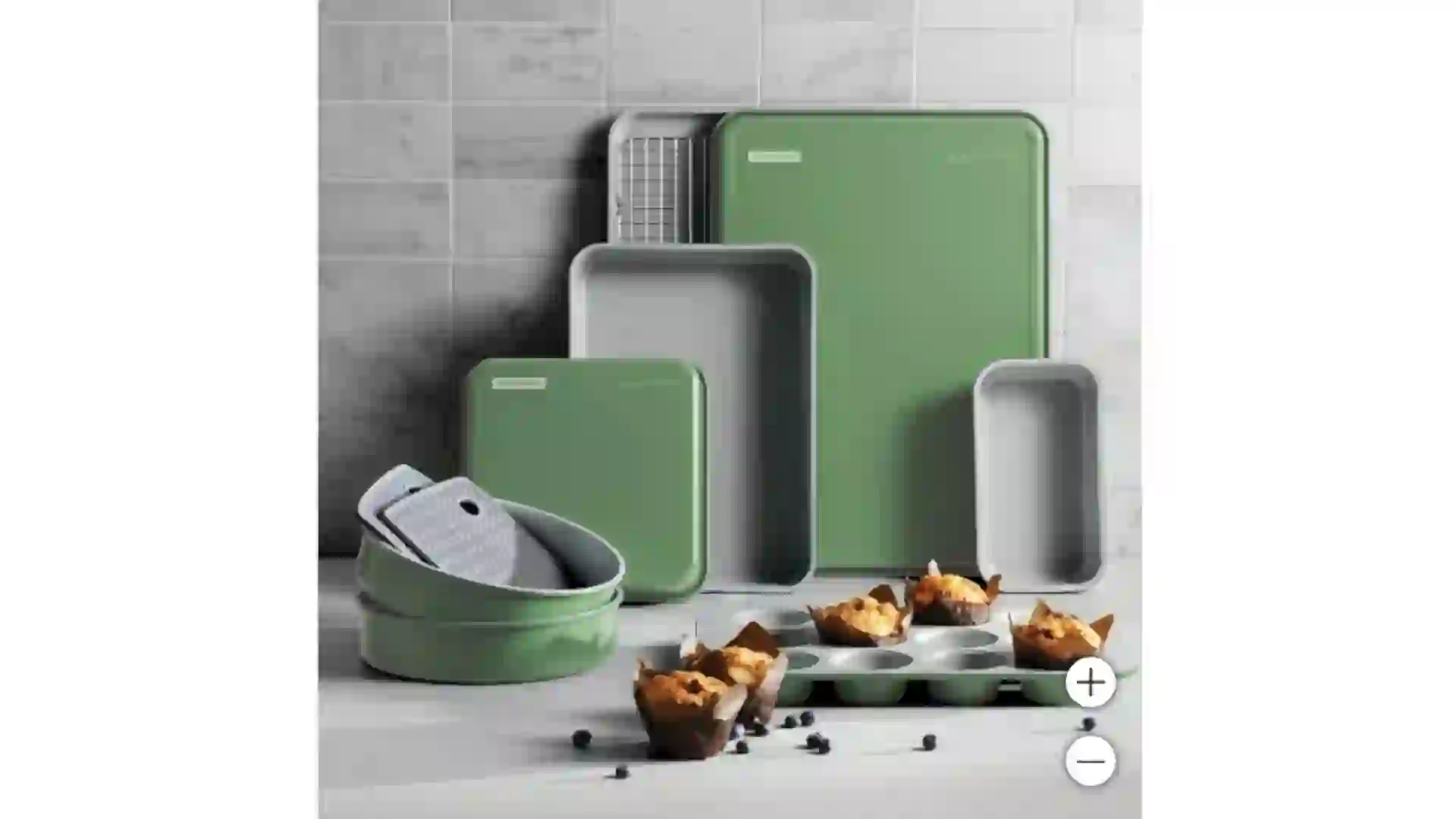 This comprehensive set includes a durable nonstick interior, silicone grips for safe handling and a stainless-steel cooling rack. It’s also oven-safe up to 500°F and dishwasher-safe.