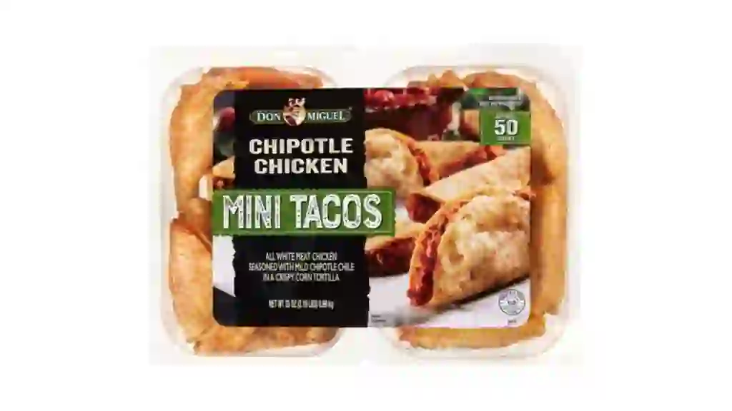 Anyone up for mini chipotle chicken tacos? These tasty Don Miguel snacks come with 50 mini tacos in every container and can be paired with your favorite guac or salsa (or both).