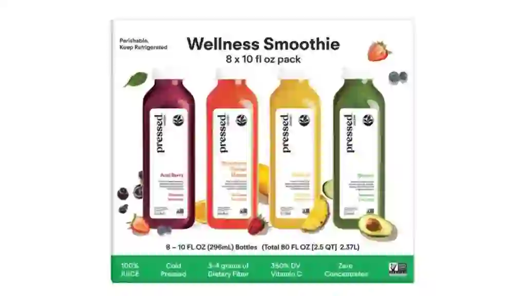 Any time of day is a good time for wellness smoothies from Pressed Juicery. Each eight-count box comes with bottled smoothies in acai berry, greens, tropical and strawberry orange mango flavors.
