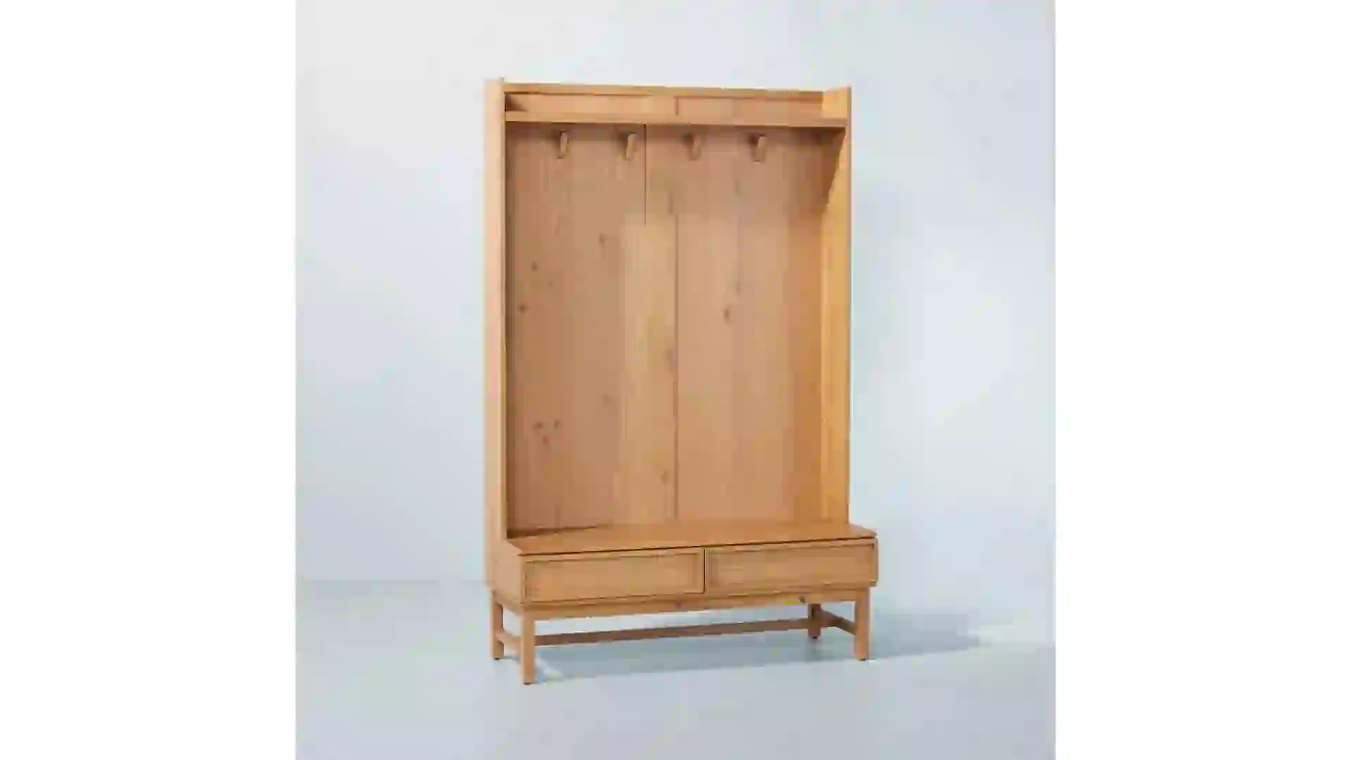 Wood & Cane Transitional Entryway Bench and Hall Tree