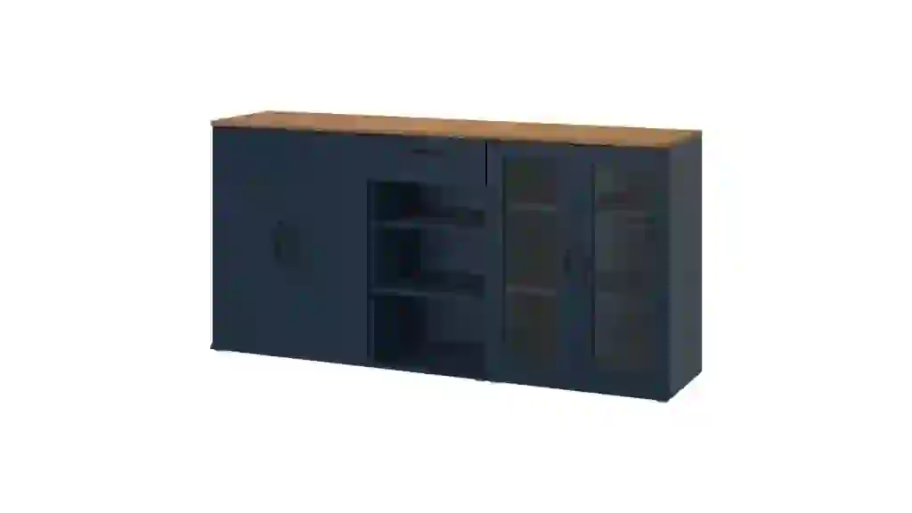 “It’s got that textured wood look we all love for hitting the warm but modern note, but what sets this one apart is the depth and shelf spacing [and] design,” Niemala described. “It’s deep enough to hold AV components without looking too far out from the wall.”