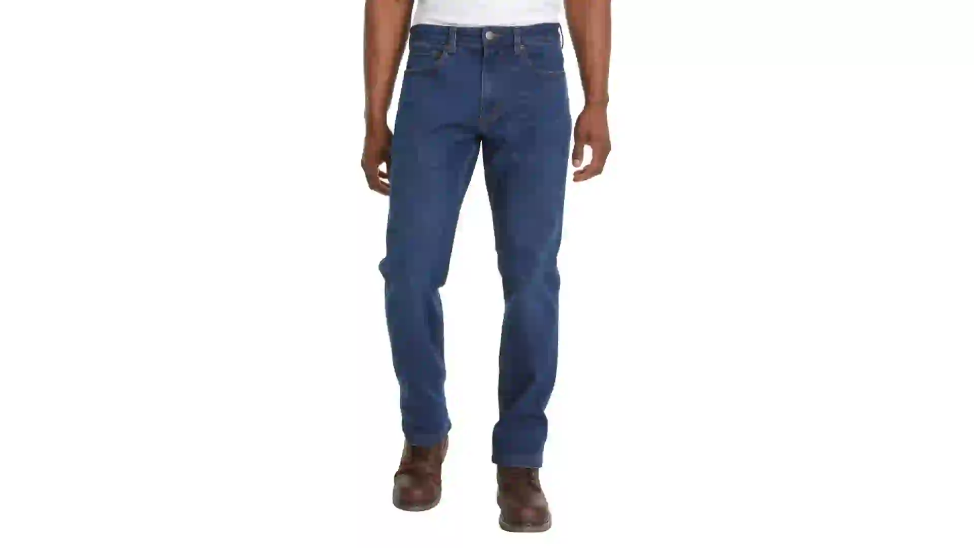 Offered in blue and dark blue, the Kirkland Signature men’s stretch jean has a reinforced hem with a front button and zipper closure.