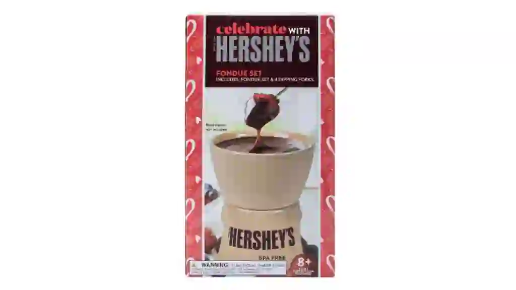 Inside every box is everything you need for melty fondue including a small Hershey’s fondue pot and four dipping forks. Please note this product is suitable for ages 8 and up.