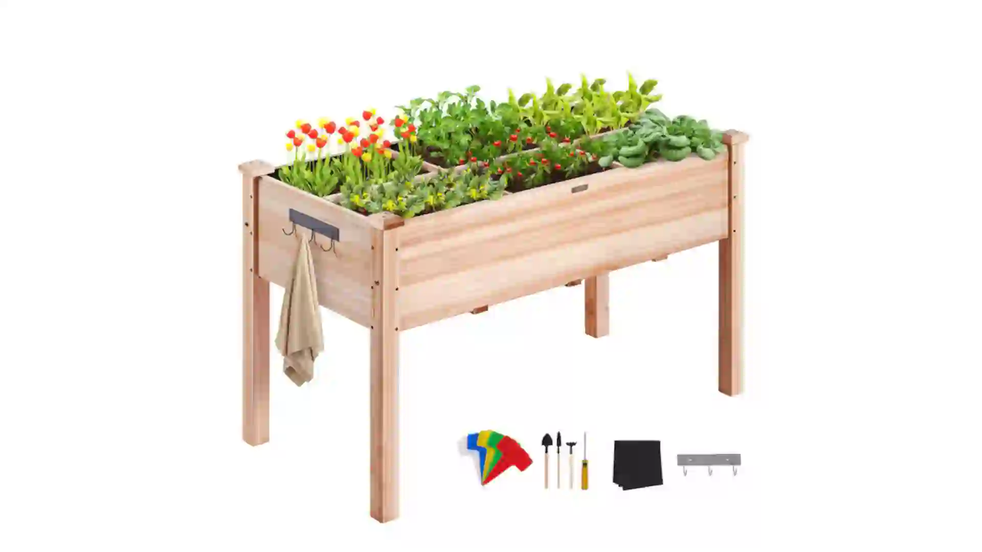 Make it easier to grow vegetables and herbs this spring without the need to bend down or kneel. The Vevor raised garden bed stands 30 inches high and is made from thick natural fir wood designed to handle outdoor conditions. The bed has four drainage holes to prevent water and mineral buildup and includes a non-woven liner to help separate soil from the wood. The set also comes with plant labels and basic planting tools to help get your garden started.