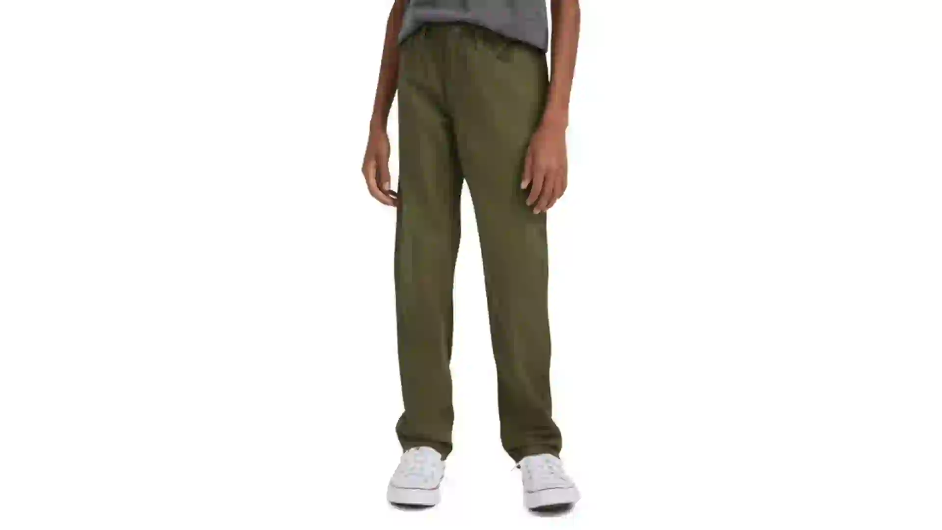 Offered in multiple fun colors, the Levi’s boys slim-fit denim jeans are made with comfortable stretch denim. Featuring a zip fly and button closure, these classic jeans have a traditional five-pocket design.