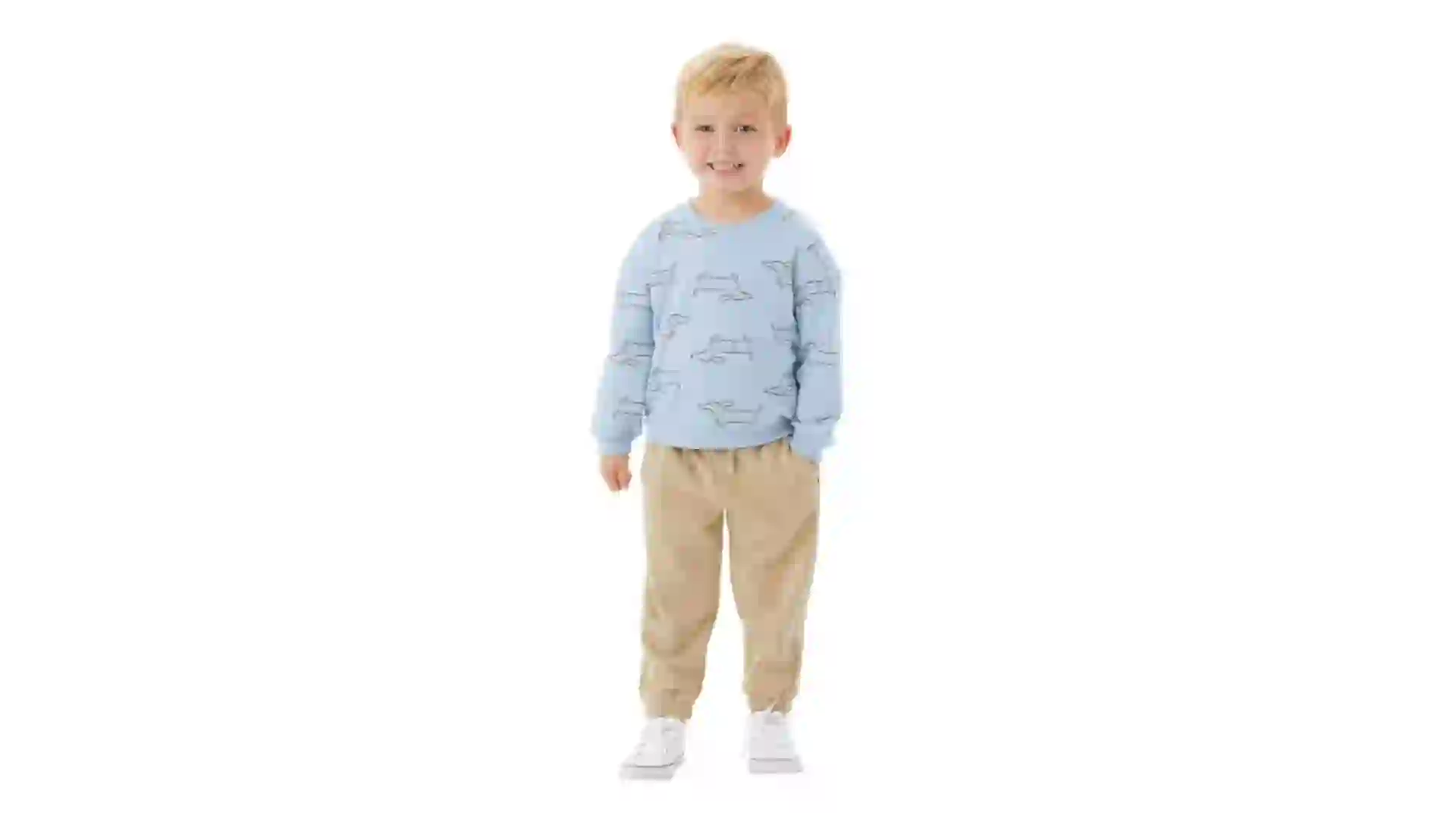 Cute and comfortable, the Member’s Mark toddler boys two-piece outfit set includes a French terry sweatshirt and matching pants. Choose from four design patterns, made for wear at school or play.