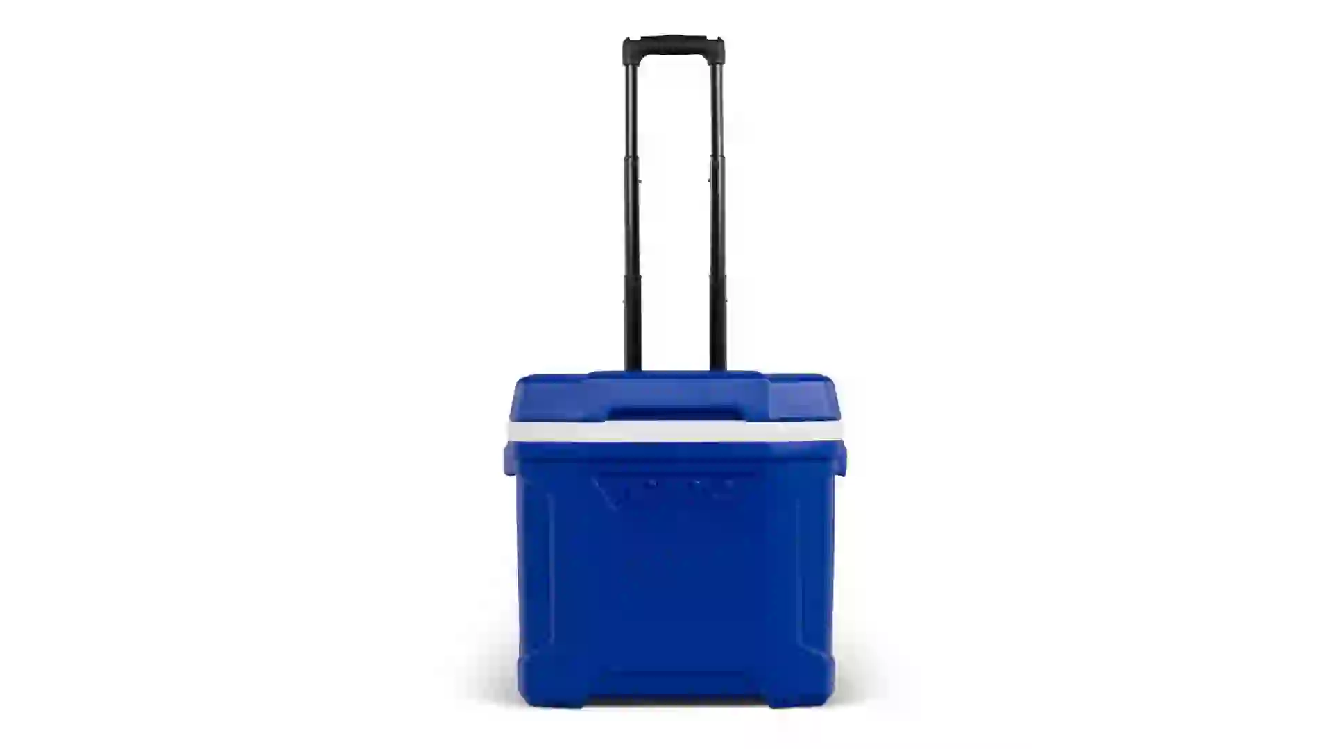 The Igloo Latitude hard-sided rolling cooler holds up to 41 cans, keeping drinks and food cold for your entire crew all day long. The blue cooler is well insulated and easy to clean, and it features built-in cupholders in the lid and a locking telescoping handle.