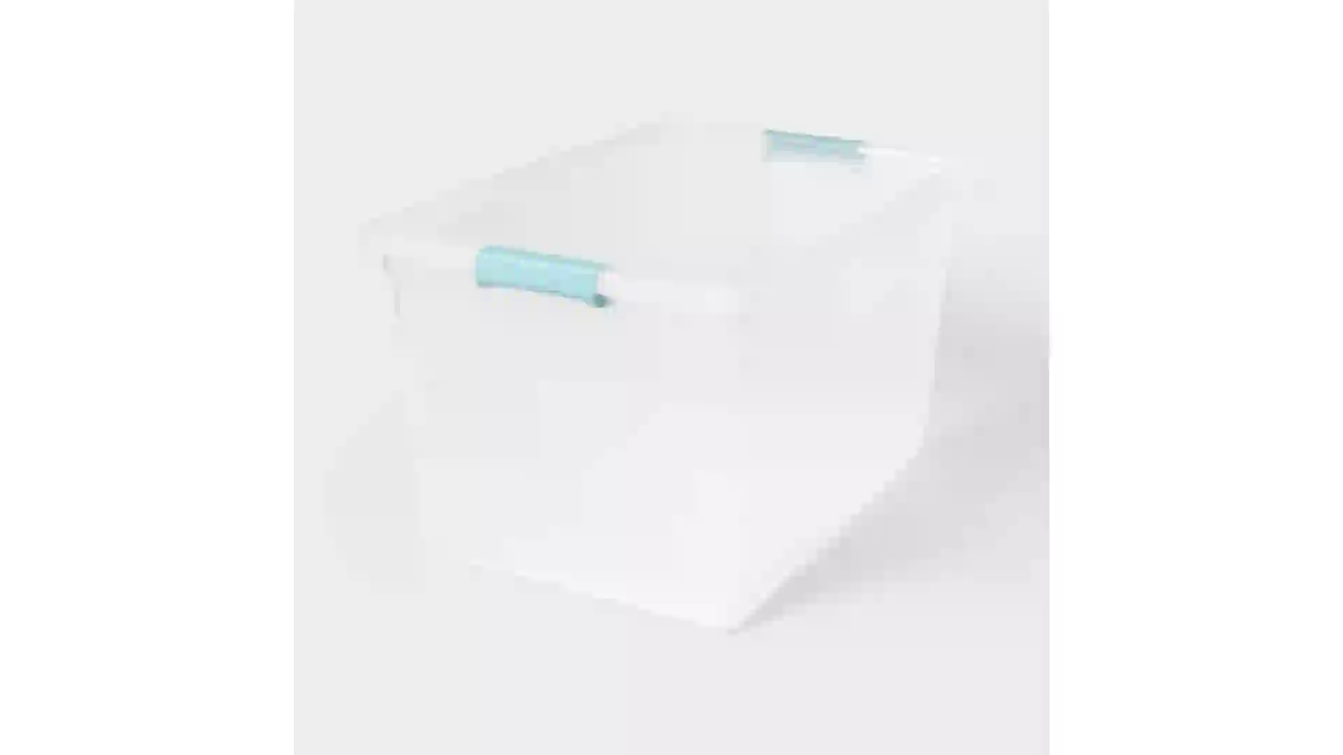 A clear storage bin gives those items a place. You can see what’s inside without opening it, and the latch lid keeps everything contained. It also stacks easily, which helps if you’re trying to free up space.