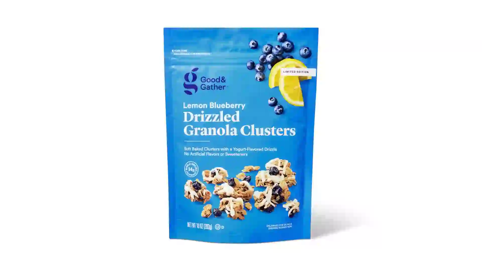 Put a spring in their step with Good and Gather drizzled lemon blueberry granola clusters. Natural-flavored lemon and blueberry soft baked granola clusters with yogurt drizzle provide 14 grams of whole grains in each serving.