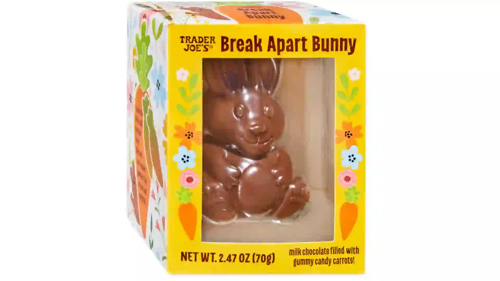 You really can’t go wrong with any of Trader Joe’s Easter candy options. One standout option is the Break Apart Bunny. It’s well known and loved, and inside his belly, you’ll find gummy candy carrots. It’s a great treat for families with young children.