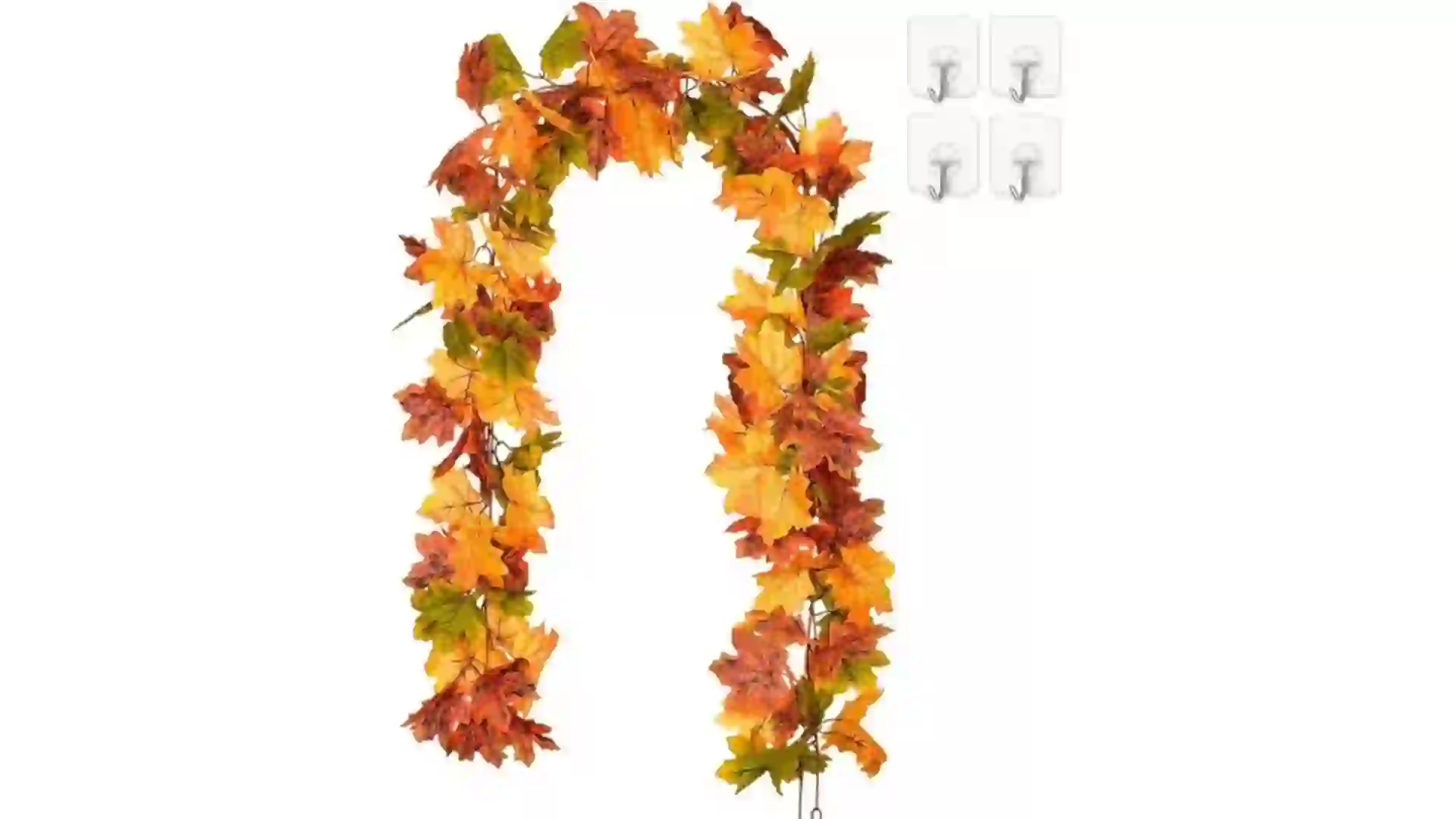 Skip the real leaves and bring autumn colors indoors with this two-pack of maple leaves fall garland. Each 6-foot garland includes colorful, silk cloth leaves designed to mimic those of fall maple trees. Use them to add interest to a fireplace mantel or decorate a star railing.