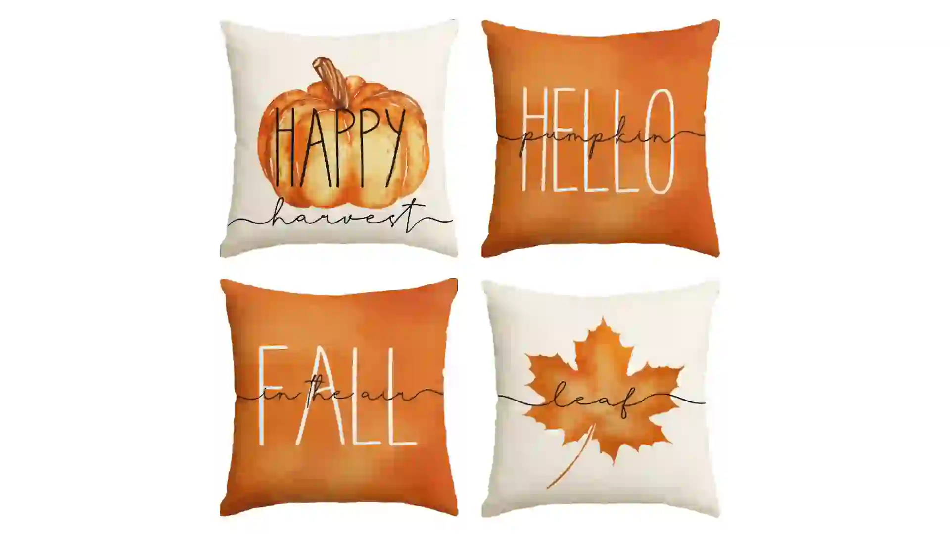Add some pops of fall color to your sofa with this set of four fall pillow covers, which fit 18-inch-by-18-inch pillow inserts (not included). The set of covers features orange and white designs, as well as pumpkins and leaves. If you’re hosting Thanksgiving, grab a few now for a festive touch.