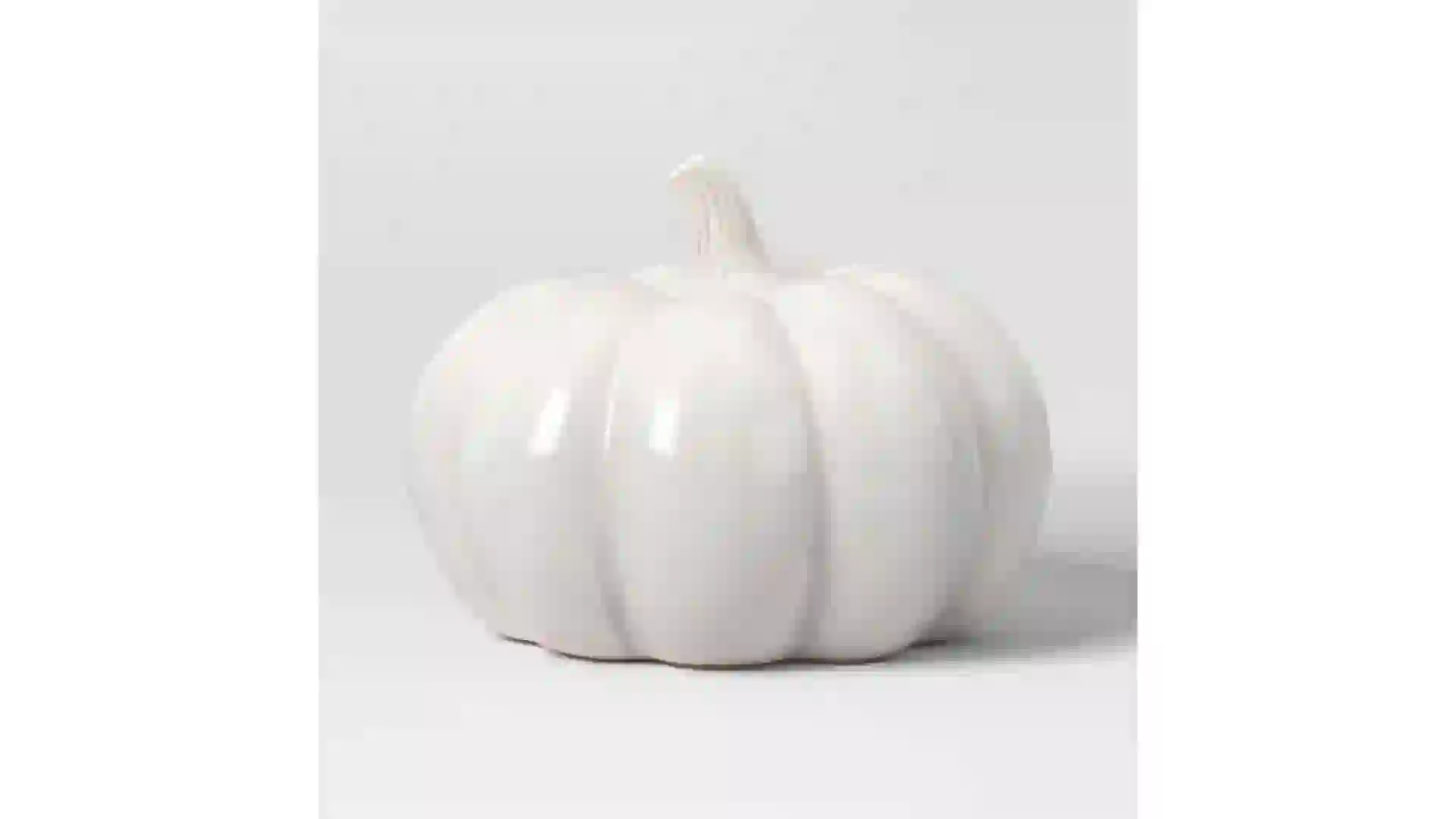 Rather than opting for a traditional orange pumpkin, consider this white ceramic pumpkin to give your living room fall decor a more neutral look. It comes in a small and large size, so you can consider buying both for some variety in your fall decor.