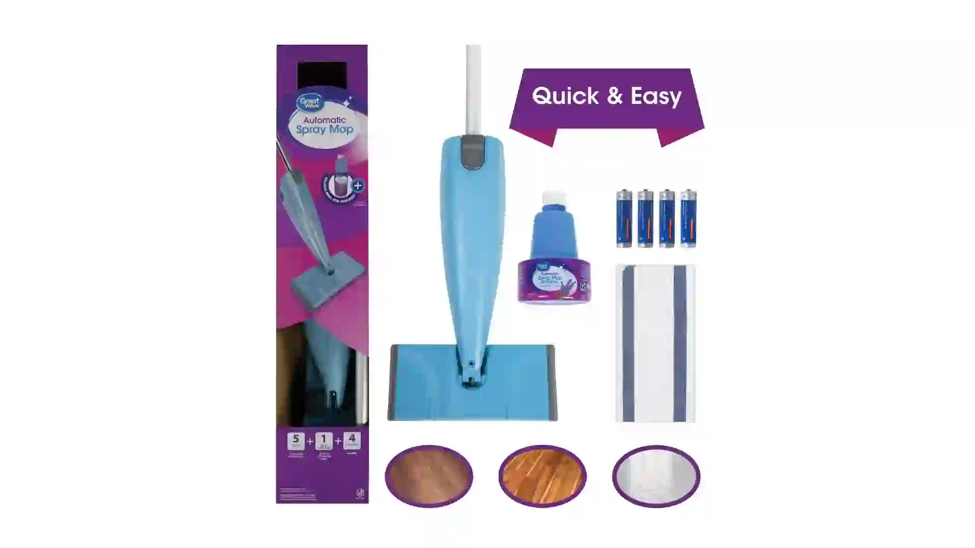 A 24-pack of Great Value replacement pads costs $11.97, or about $0.50 each, compared with $14.94, or about $0.62 each, for Swiffer. With that in mind, the Great Value spray mop works with Swiffer pads if you’re ever in a pinch.